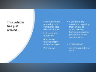 A £99 fully refundable deposit reserves this car for up to 7 days. Once you have completed your reservation you will receive an email confirmation and a member of our team will be in touch to discuss any finance or part exchange requirements.